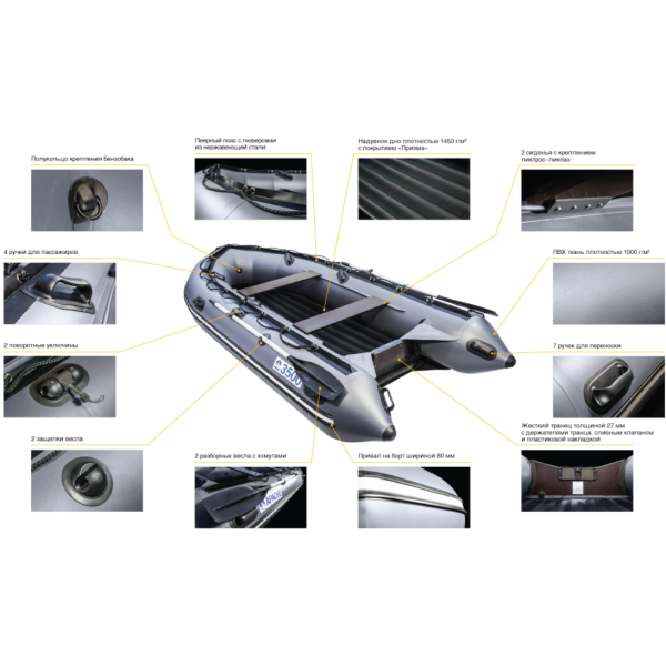 Увеличенный размер баллонов позволяет чувствовать себя увереннее внутри лодки и избавляет от ощущения, что сидишь на скамейке над водой.